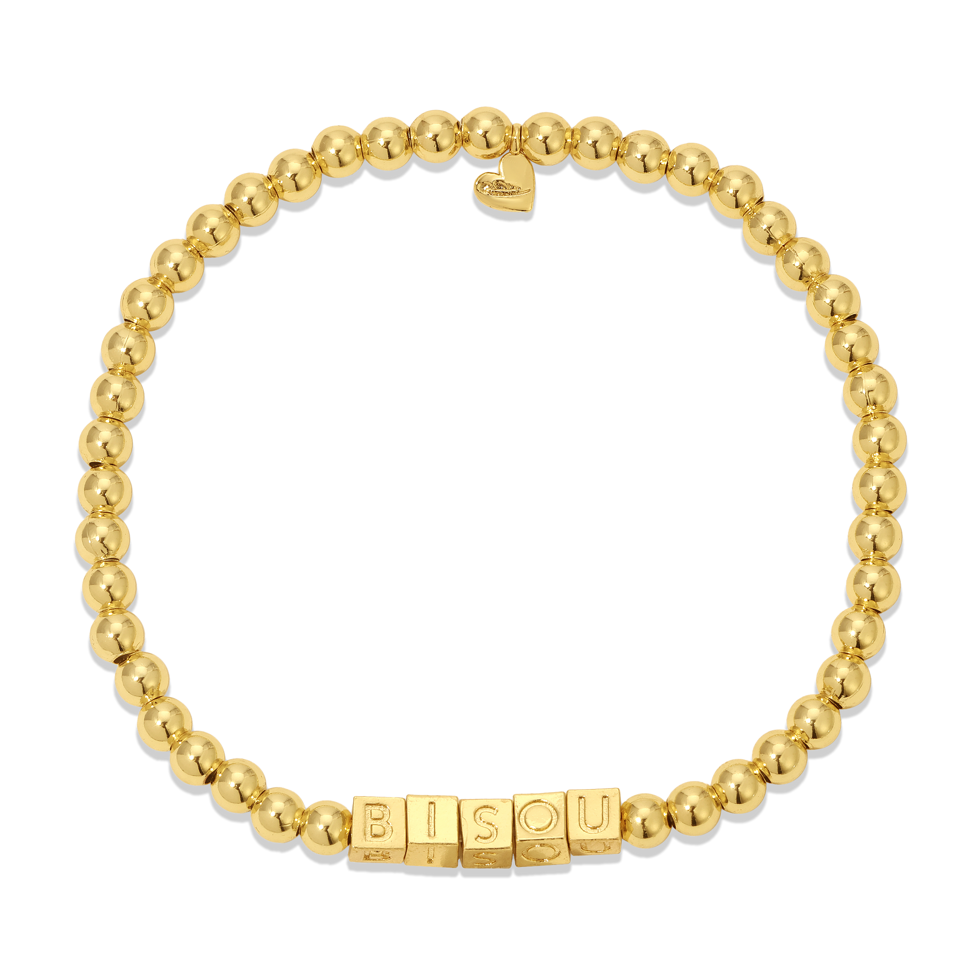 Spread sweetness with the Bisou Love Language Bracelet. Featuring 14k gold-dipped beads that spell "Bisou" (French for "kisses"), this bracelet is a playful reminder to share love and joy. Perfect for gifting or adding a touch of whimsy to your style.