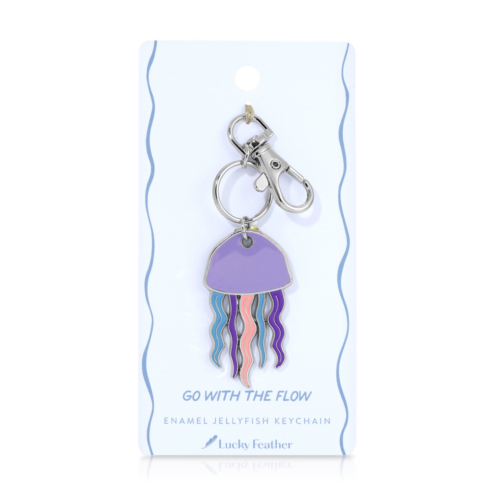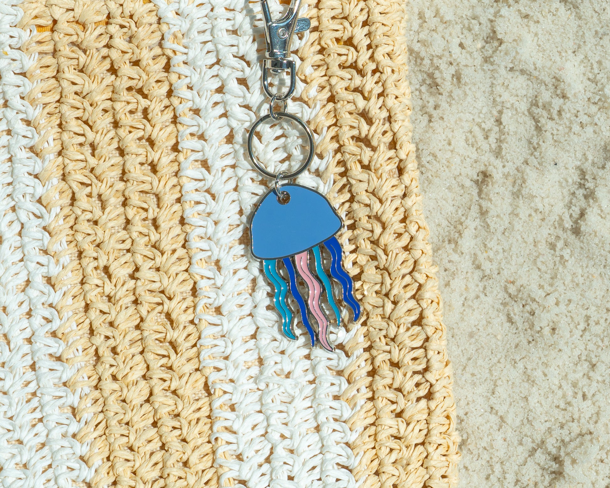 • Durable metal and enamel keychain with multicolor jellyfish design